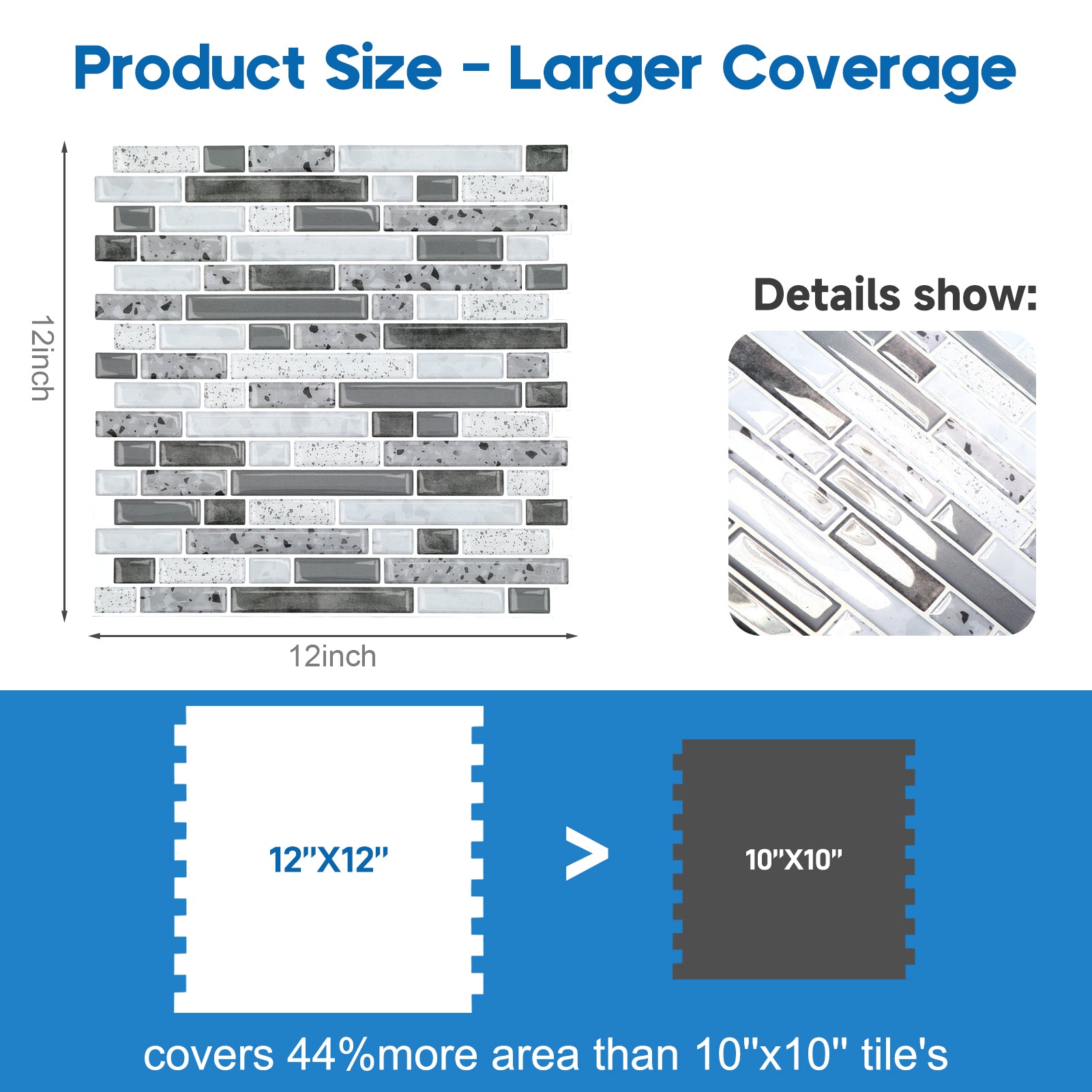 12" X 12" Gray White Peel and Stick Wall Decor Tile 3D Vinyl Backsplash
