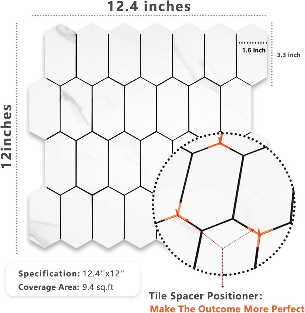 • Premium Materials:Made of PVC composite laminate mix metal, anti-scratch, high impact, color fadeless, more durable and stronger than other plastic self-adhesive tiles. Realistic marble texture and Long Hexagon design, which can be installed in Vertical or Horizontal styles.