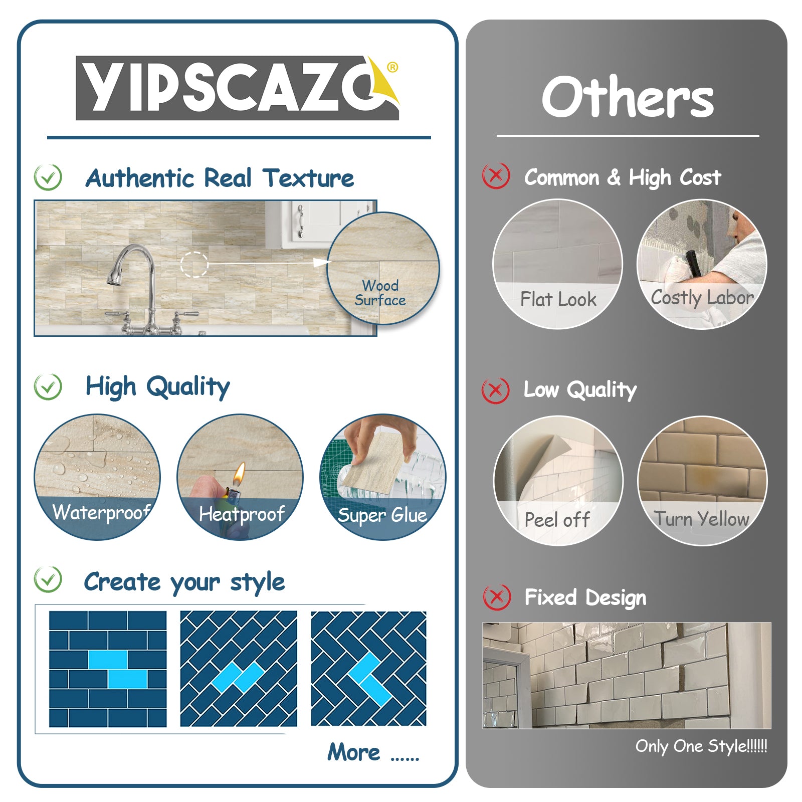 REAL TILE STRONG RESISTANT: Premium tiles that are lightweight and durable, with a strong backing for wear and tear resistance. Ideal for elevating your kitchen and bathroom with a sophisticated and elegant touch.