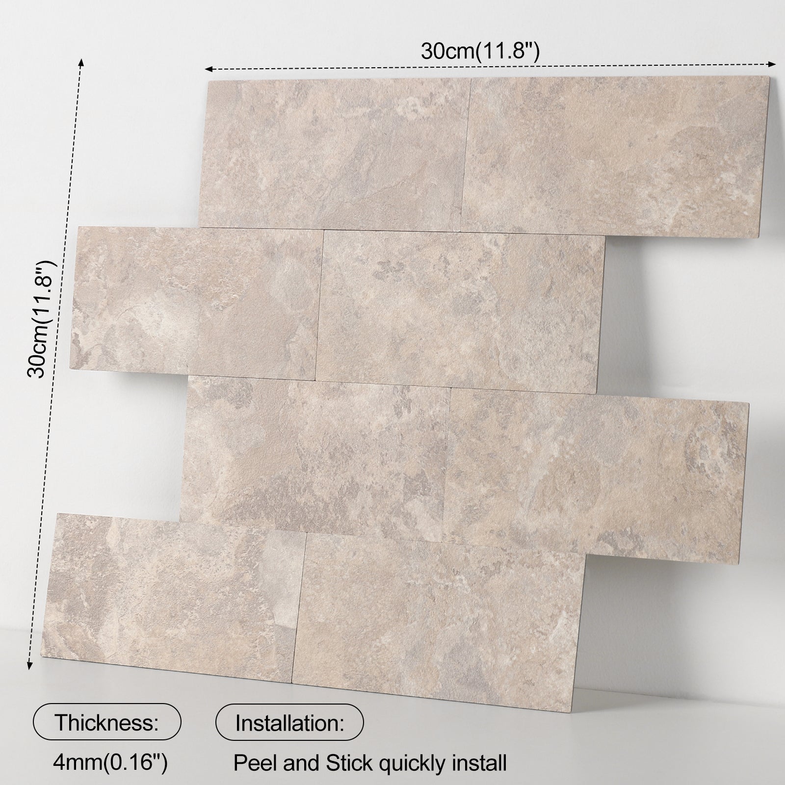 - ✔SIZE OF TILE: 10 sheets of peel and stick tiles, 11.9" X 12.2" X 0.08" each, about 10 square feet coverage, need cutting, please consider 1% wastage.