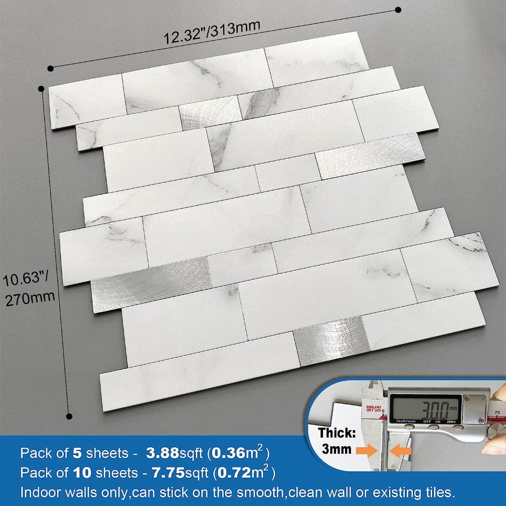 - Specification MOFIT Stick on Tile:12.32"x 10.63"x 0.12" each, cover about 3.88 square/5pcs,7.75 square/10pcs feet, much thicker than vinyl tiles on the market, can be stick over existing tiles or any smooth surfaces such as glass, metal, painted wall, cement wall.