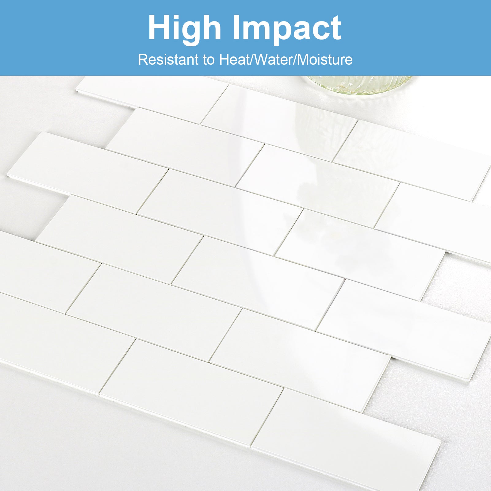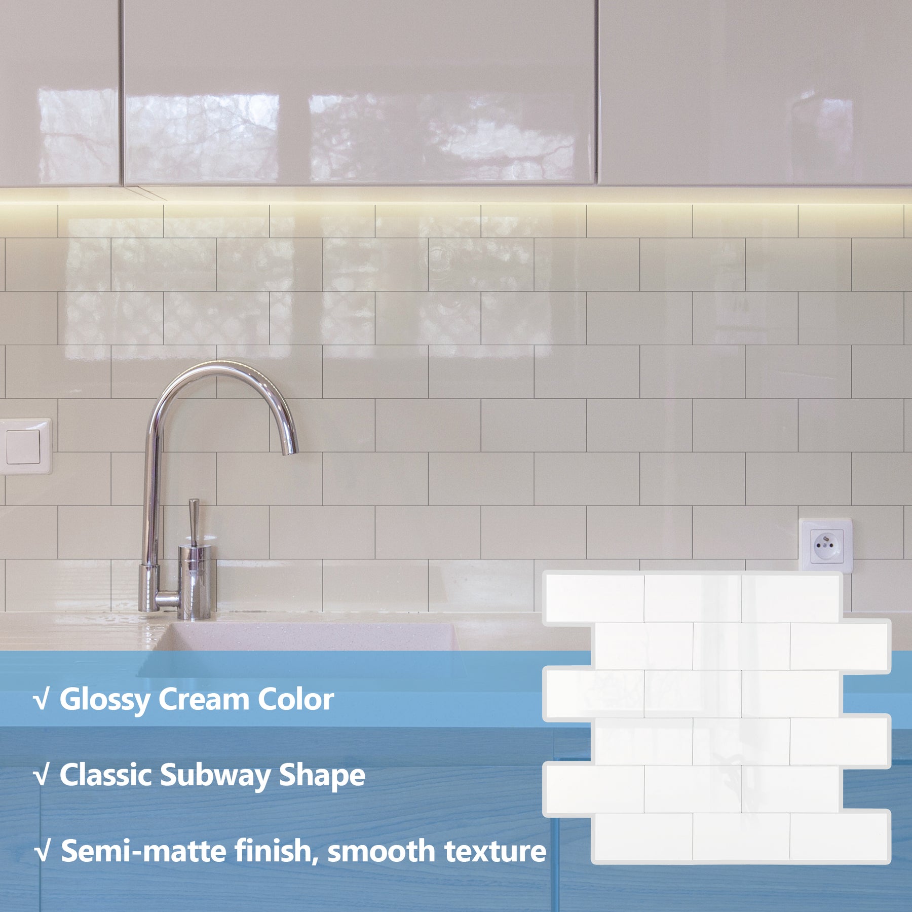 12" X 12" Polished Cream White Subway Backsplash Tiles PVC Peel and Stick Tile
