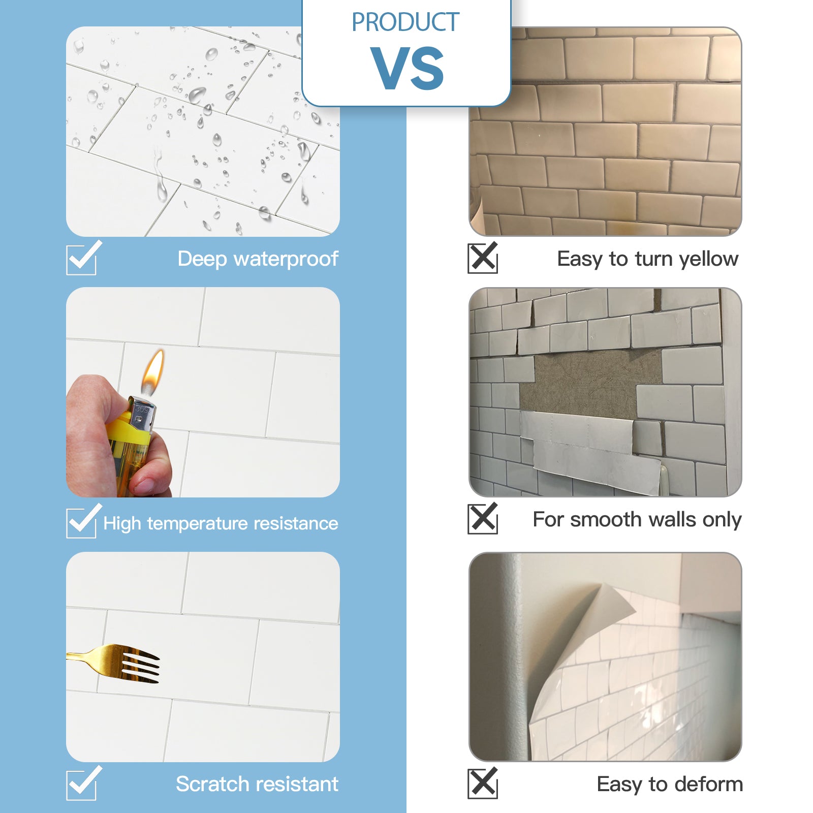 • Upgrade Version Home Decor Backsplash: Made of 6 composite laminate,4mm thicker, more durable and stronger than other plastic versions in market, but lightweight, anti-scratch, high impact, color fadeless, not easy to bend and deform.