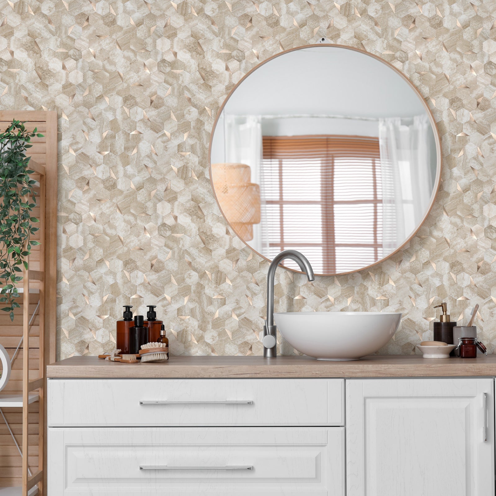 Hexagon Tiles Peel and Stick Backsplash Beige Slate 3D PVC Wall Tile