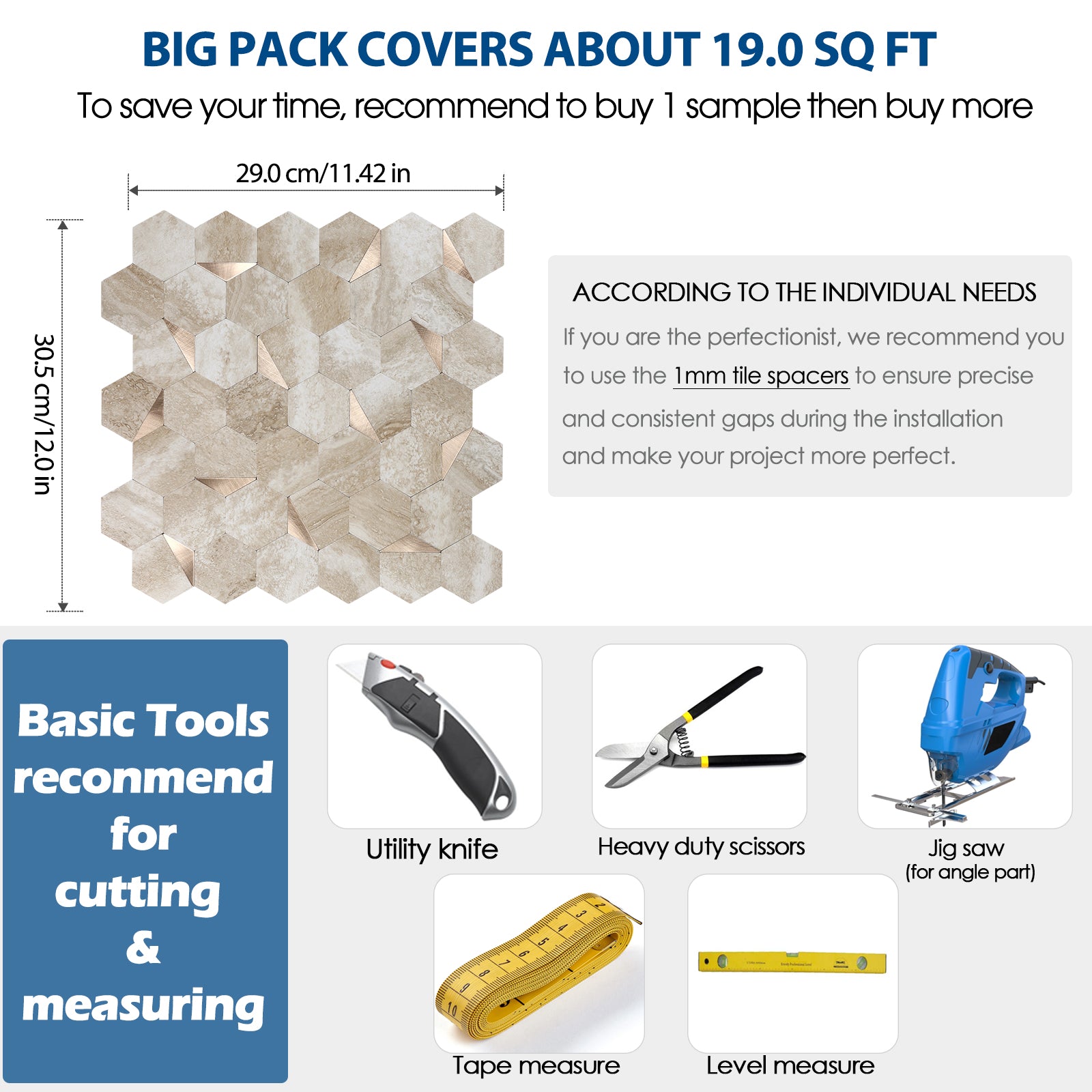 12" x 12" Hexagon Tiles Peel and Stick Backsplash Beige Slate