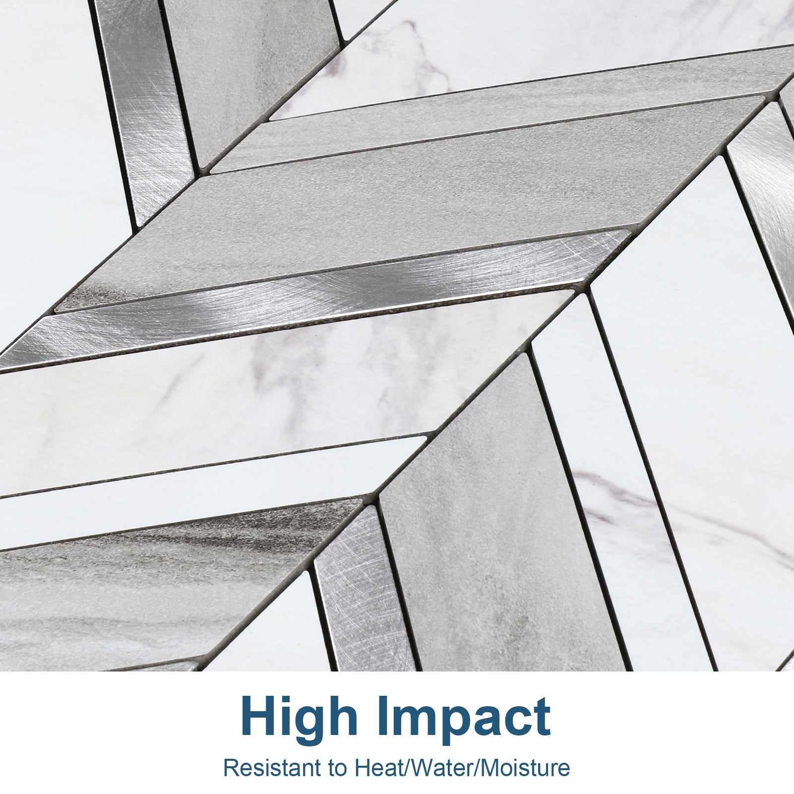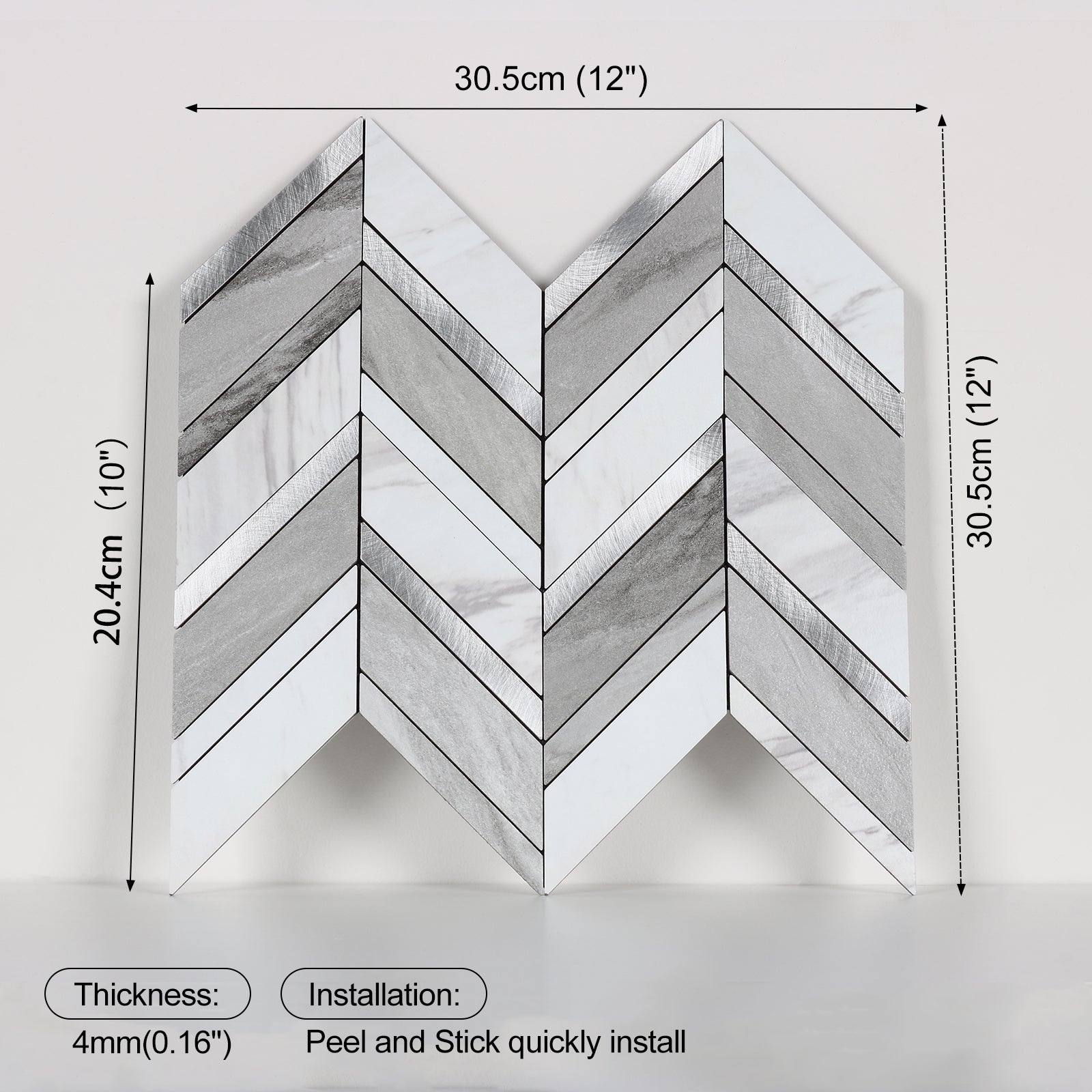 12" X 10" White Mixed Gray Stone Silver Herringbone Backsplash Peel and Stick Tile