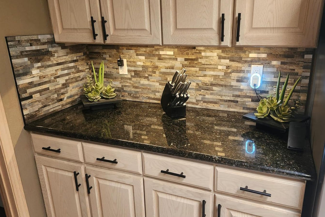 The product was thicker than I thought which is awesome, and it was still easy to trim and apply. This turned out beautifully and added just the right shade and texture to complement my kitchen! I’ll be purchasing more to do my island! - Madeline Lutz