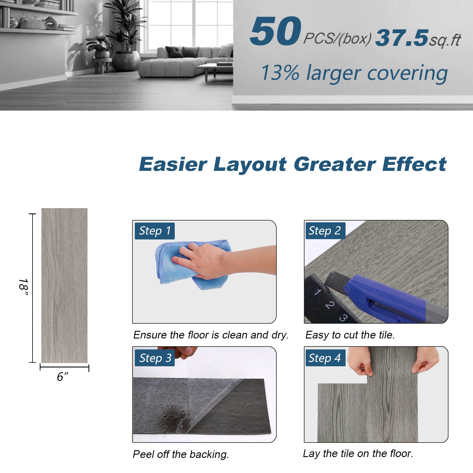 • 🌲Upgraded Design - Each 1.5mm thick upgrade core plank is designed to firmly adhere to the floor, preventing bubbling and curling, while the larger plank sizes (6.2 x 39.4 inches) simplify installation and promote a natural, seamless texture alignment.